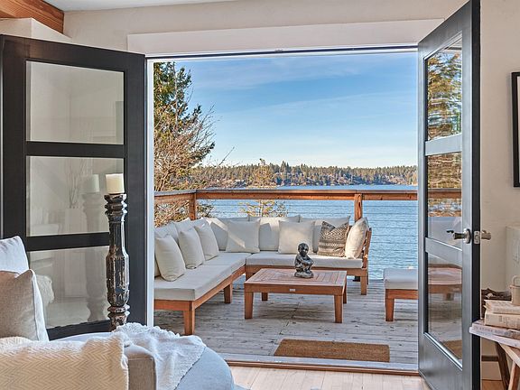 Nestled near the heart of the City of Hayden Lake, this Hayden Lakefront abode has been transformed into a turn-key sanctuary. This charming home has been completely remodeled, boasting newly refinished wood and custom stone floors throughout, two incredibly peaceful master bedrooms, a third/flex guest room w/fantastic kitchenette, three bathrooms, and stunning lake view vistas stretching from Honeysuckle Beach to the Hayden Lake Country Club and beyond Bevern Bay. The main floor kitchen combines the styles of Danish functionalism and French culinary sophistication with gorgeous lake views, new hickory cabinetry, custom flagstone wall, a sizable pantry, and high-end, new appliances including six-burner Thermador gas range oven, Bosch refrigerator and dishwasher & farmhouse sink in the culinary island. Each of three bedrooms feature serene lake & mountain views, abundant natural light, neutral soothing colors, and natural wood & stone finishes. Located on a .33-acre parcel extending to a newly updated 75' private shoreline & recently renovated, covered deep water dock, you'll find enhanced privacy, wonderful outdoor living spaces, and the utmost in modern comfort in this sanctuary home. It's a place where every detail has been thoughtfully and professionally curated to create an iconic lakefront living experience! Enjoy the new deck, new roof, and ample parking spaces plus room to grow by utilizing the land between the house & lake which is already zoned for an additional 1150 sq. ft. dwelling. High-end designer furnishings (negotiable) selected expressly for its spaces for the ultimate in lakefront living or vacationing [sleeps eight]. Timeless sophistication and style with an ideal location close to all the amenities of Hayden & Coeur d'Alene living!