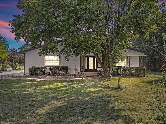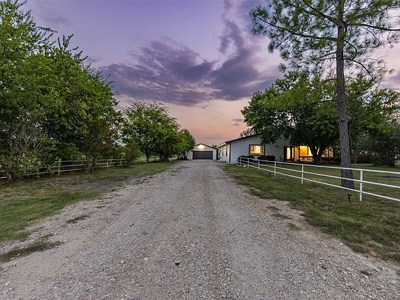Step into timeless charm and contemporary luxury with this modern farmhouse fully renovated in 2023 nestled on 12 acres of serene countryside featuring a seasonal creek, tranquil pond, and the perfect mix of pasture and trees! Designed with a spacious open floor plan and expansive windows, this home is flooded with natural light! Enjoy cozy evenings by the stunning two-sided fireplace that connects the living room to the breakfast and Kitchen areas! A chef’s dream, the gourmet Kitchen boasts quartz countertops, a large center island with breakfast bar, 36 inch gas range with stainless steel vent, coffee bar with wine cooler, deep farm sink, and double door pantry! Entertain with ease! Property also features a wet bar with butcher block countertop, formal dining, sunroom, and a generously sized office space perfect for those who work from home! This room could be easily utilized as a workout space, playroom, or even converted to a 4th bedroom! Step outside to the huge patio area overlooking the beautiful in-ground pool redone in 2023 with new fence perfect for summer gatherings, watching the evening sunsets, or relaxing under the stars! Additional features include a storm shelter for peace of mind and a detached garage for extra storage or workspace! Quick access to Hwy 380 and Hwy 69 for an easy commute! Move to the country while staying just close enough for a quick trip to town! Don't miss this one!