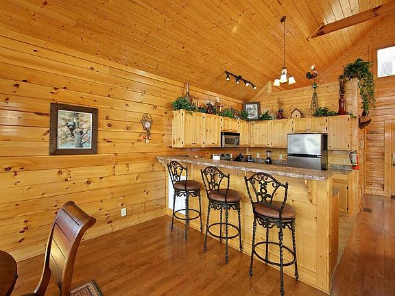 Gorgeous 1 bedroom, 2 bath cabin with spectacular Mountain Views! This luxury cabin is already established on overnight rental and does excellent. Offers pool table in the game room, hot tub, covered deck, King suite with Whirlpool tub and shower, and vaulted ceilings. Comes fully furnished and decorated!
