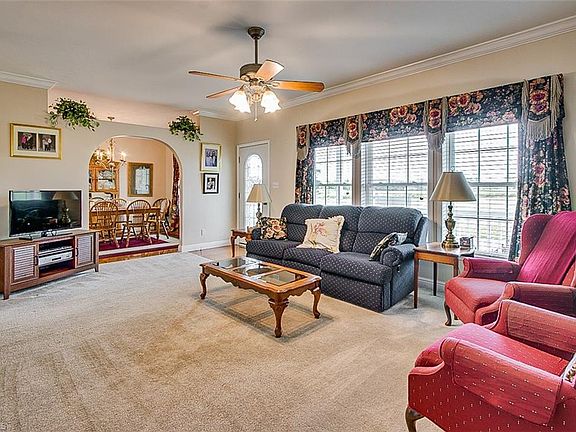Beautifully maintained home on 3+/- acres! Spacious open floor plan features 9' ceilings, great room with fireplace with gas logs & built-in shelving. Formal dining room with arched doorway. Nice kitchen with eat-at island, pantry, pull out shelving & all appliances remain, including refrigerator. Nice laundry room with storage cabinets, washer & dryer remain & built-in desk. Primary suite with walk-in closet and bath with double vanity, walk-in jetted tub & separate shower. Great space to relax in the sunroom - not heated/cooled & is not included in sq footage. Double attached garage with storage room with shelving remaining. Selling as is. Beautiful setting!
