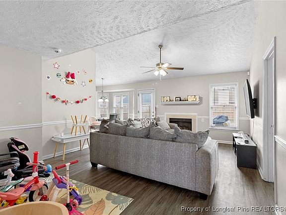 Located 20 minutes from Fort Liberty, tucked in a quiet neighborhood close to the hospital, this home offers 3 bedrooms and 2 baths and an ideal amount of space. The lighter brick veneer and dark gray siding color contrast creates strong curb appeal. The private fenced backyard and a patio makes hosting BBQs or taking in the sun a treat. The family room includes a cozy fireplace and vaulted ceiling, adding a feel of roominess. The kitchen offers a large eat-in nook and stainless-steel appliances. The master bedroom boasts ample space and a private bath. Laminate flooring throughout. This well-maintained, move-in-ready home won't last long! Come see it today! $1,500 closing cost credit with preferred lender, Cross Country Mortgage. Go to 910mortgage.com for an application.