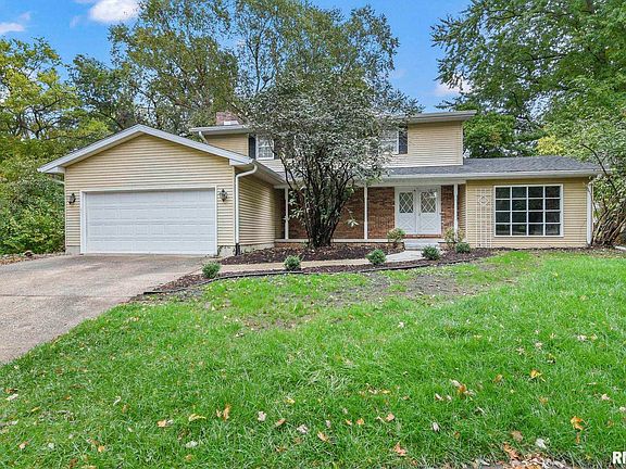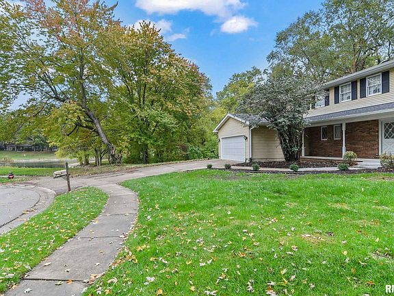 This classic four-bedroom, two-story home sits on a cul-de-sac adjacent to Wood Lake on Springfield's west side. Enjoy lake recreation just steps from your yard! Enter the two-story foyer and to the right, you will find a sunken vaulted living room. Step into a formal dining room and the eat-in kitchen with a tiled slate floor, updated appliances and cabinets, and granite counters. A large family room featuring a fireplace with a brick hearth and sliding doors to the backyard. Also on the main floor is a half bath and laundry room with access to the two-car attached garage. Upstairs is a vaulted master suite offering a second fireplace, attached bath, and walk-in closet. Three additional bedrooms share a large hall bath with double sinks. The basement is unfinished, with rough-ins for plumbing. Outside, you will find a large backyard and a side yard overlooking Wood Lake with lake access. Roof is approximately 5 years old.