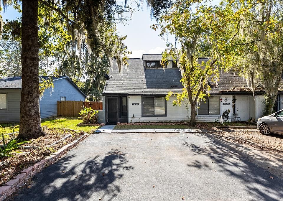 Looking for a wonderfully located townhouse with NO HOA! This 2B/2B end unit offers a spacious living room with high ceilings and tall windows allowing for an abundance of natural light. The first floor bedroom has a walk in closet and sliding glass doors that open to a patio overlooking the lush fully fenced backyard. Upstairs is a landing open to the first floor that is perfect for a small office, workout or reading area. You also have the second bedroom upstairs with double doors, a walk in closet and private bathroom. Both bathrooms have been renovated, newer HVAC 2020, newer water heater 2020. New roof scheduled for 12/18/23. This home is conveniently located close to I-75, UF Health, UF, VA Hospital, Vet School, Publix, Butler Plaza, Restaurants and much more. Don’t miss the opportunity. Call for an appointment today!