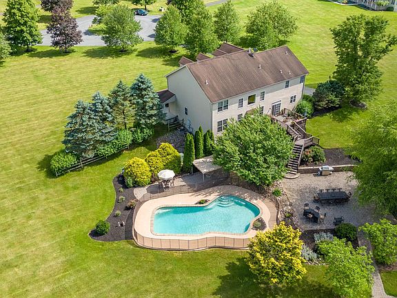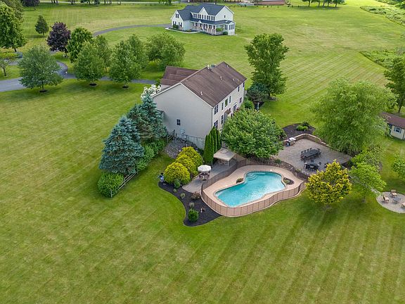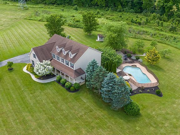 7.247 ACRES!!! This stunning 5-bedroom, 2.5-bathroom home offers an impressive 3,959 sq ft of living space plus a 1,700 sq ft unfinished walk-out basement with a laundry room, providing endless possibilities! This property is perfectly located around a country setting with accessibility to everything you may need. 10 min away from I-78 and Route 611, (1) hr from Philadelphia, (1.5) hrs from NYC. Get ready to be wowed by the kitchen featuring granite countertops, an island, and sleek stainless steel appliances. The open dining/living room area is perfect for hosting memorable gatherings. The luxurious master suite includes a private sitting room/office, creating the ultimate retreat. A first-floor bedroom for guests and additional bedrooms are generously sized, ensuring comfort for everyone. Step outside to your personal oasis, a paved backyard with a sparkling pool, ready for unforgettable summer fun and entertaining. The cul-de-sac location provides added privacy, making this home a true sanctuary.