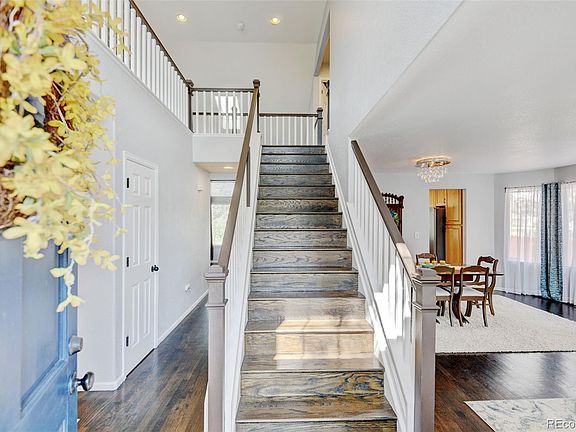 $20,000 Price Reduction! This popular Horizon model is a 2-story floor plan with an abundance of windows on the back of the house to bring the open space and mountain views into the house! This premier location backing to serene open space has pond views and wonderful mountain views! The main level features a family room with a vaulted ceiling open to the second floor and a cozy fireplace, a kitchen boasting granite countertops, stainless steel appliances, recessed lighting, and an eating space with picturesque views. A formal dining room and living room offer elegant spaces for entertaining and relaxation, and unique to this model in this price range is a main floor bedroom with a 3/4 bathroom. Upstairs, the primary bedroom awaits with vaulted ceilings, a spacious 5-piece bathroom, a walk-in closet, and breathtaking views. Two additional bedrooms provide ample space for family or guests. The secondary bedroom on the back of the house has amazing views and is large enough for a king-size bed. The finished basement offers a second family room, a dry bar area perfect for entertaining, and a fifth bedroom. Residents of Rock Creek enjoy exceptional amenities, including a swimming pool, tennis courts, and walking trails, all while being ideally located between Boulder and Denver.