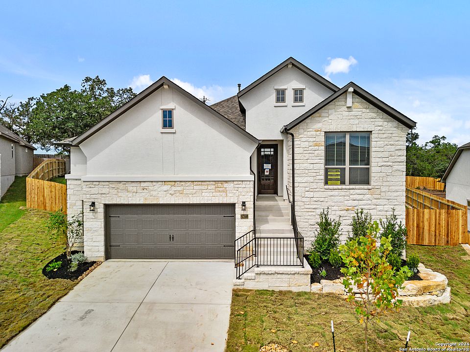 An oversized homesite with one of the most popular designs in Elkhorn Ridge. This one story Monticello home will not disappoint. You will fall in love with this 3/2.5/2.5 Dearborn plan. The one story is a great plan with a large back yard. The large great room opens to the kitchen and breakfast, perfect for gatherings. Many beautiful upgrades throughout. Tankless water heater, full sprinkler system, all the extras you expect from a quality Monticello Home. Don't miss your opportunity to live in Fair Oaks Ranch and one of the few last opportunities in Elkhorn Ridge.