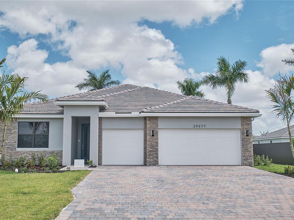 NEW Construction Model FRASER! single-story estate in Redlands home boasts a spacious and popular layout with 4 bedrooms and 3 full baths, offering over 2533 sq ft of AC living space and a total of 3,436 sq ft. Lot 17,075 Sq Ft. The home features beautiful White Kitchen cabinets with White Granite Counters and Stainless Steel Appliances. The impact windows throughout the house ensure safety and durability. The exterior showcases a modern and elegant finish. Enjoy the covered terrace, 3-car garage, and ample space for a pool, boat or RV. This brand new home is walking distance to the Heritage market, known for its delicious food and exciting festivals throughout the year, and conveniently close to restaurants, shopping centers, and the Baptist Homestead Hospital. Don't miss the opportunity.