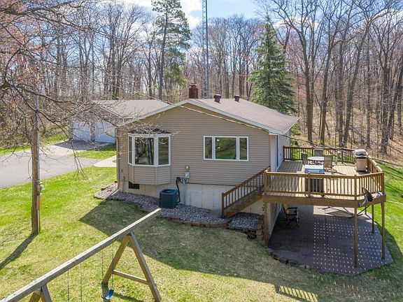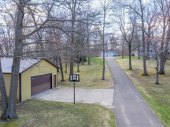 Spectacular private 6.3 Acre setting with mature trees and rolling hill overlooking pond featuring 3 bedroom 2 bath rambler with spacious deck, finished basement with huge master bedroom with 2 walk in closets, jetted bath tub in lower bathroom (no shower) and family room that walks out to patio area! Detached 2 car garage plus 30 x 50 extra garage for tons of storage of the toys being in the Lincoln Lakes Area within 5 minutes to four lakes, golfing, restaurants & gas station for convenience as well as being right off Hwy 10 for an easy commute!