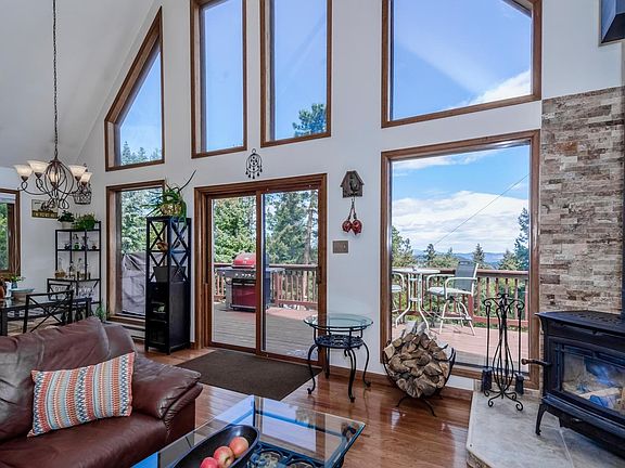 This property has it all with views, 2 acres of gently sloping land, mixture of pines, rock outcroppings, and is adjacent to Flying J open space! A vaulted ceiling in the great room and open layout enables you to experience the mountain vistas from many rooms in the house. Only steps away you can enjoy your morning coffee or evening glass of wine while relaxing on the deck. The remodeled kitchen comes with slab granite counter tops, island seating and stainless appliances. Master suite has adjacent loft for your quiet respite or office with spectacular views. The 2 guest rooms are light and bright and share a full size updated bathroom with granite countertops and vessel sink. The lower level is an open space for the perfect family room or exercise area. Complete with 2 car garage, custom chicken coop, green house and fenced garden. Donât miss out, this one is a gem!