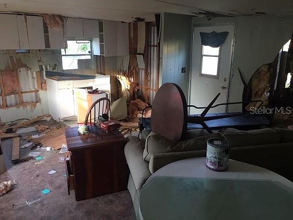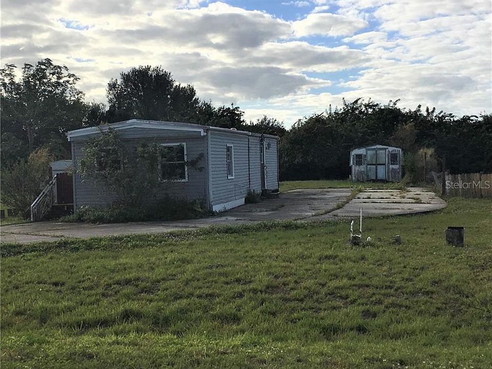 AS-IS fixer-upper mobile home with well and septic system in place, concrete driveway, and small shed at back of lot. There are piles in place for a deck on the side of the mobile home. Mobile home needs a lot of work but could be brought back for far less money than replacing it, think of it was a blank slate and you are the artist fulfilling your vision! This would make a good annual, seasonal or vacation rental as there are no age or rental restrictions. It would also make a good 'base' for an RV enthusiast who doesn't want an expensive home to worry with while travelling. The rules for repairs to mobile homes are different than conventional homes and an owner can carry out necessary repairs without a contractor's license, consult the Florida Building Code and Charlotte County Building Dept for details. This is the least expensive residential listing in Charlotte County and will not last long! Room measurements are only rough approximations. As the well and septic system are in place, replacing the mobile home is also an option. According to the Charlotte County Health Dept, the septic system is adequate for a two bedroom mobile home. DCA and HUD manufactured homes with wind zone 3 rating and more than 400sf appear to be allowed. 'Park model' homes are not allowed in this zoning. New or used mobile homes with less than wind zone 3 rating are no longer allowed to be set up in Charlotte County, consult Charlotte County Building and Planning for details.