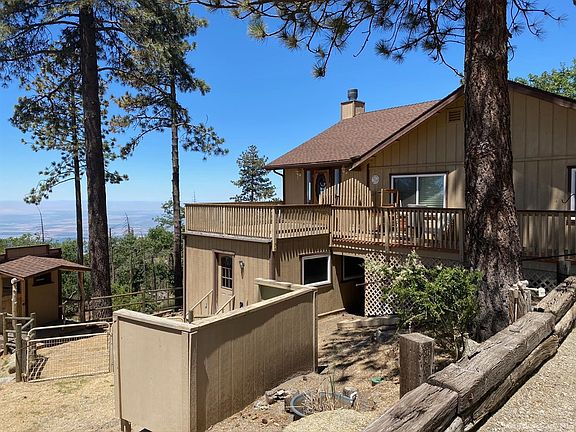 Wonderful charming home in Bear Valley Springs. This is a very special custom home with touches of charm and whimsy. Two story, master bedroom downstairs has its own living space and bathroom. On the main floor you'll find exposed wood beams, wood plank ceiling, the living room with it's exposed beams and large fireplace is cozy and full of natural light. The dining room is open to the country style kitchen, there's an island, hanging iron pot holder and lots of storage. The two other bedrooms and bathroom are also on the main floor. There is a large enclosed porch off of the kitchen with a stone sink, wood flooring, large windows, a fun wooden screen porch door that leads to the landscaped side yard, where stone retaining walls, a pond (not filled), shade trees and wonderful pathways that frame the amazing views.This home was loved, and given details that you must see to appreciate, from the 100yr. old window used as a door to a storage area under the stairs, to the touches of corbels and shelves in the windows the workshop off the downstairs and the cute out building that looks like it came right out of a movie. If you want to live in a home that has touches of creativity and interest in an area with privacy and views that will leave you breathless, then this is your new home.