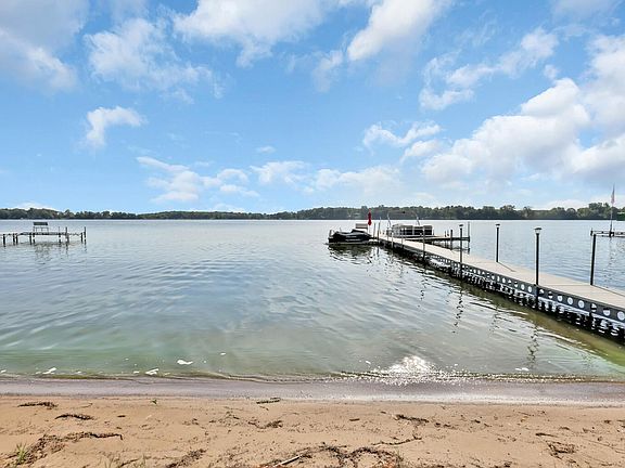 Enjoy lake front sunrises with 80' of sandy beach in a beautifully renovated and cared-for home. Spacious kitchen , heated in-ground pool (if the lake is a little cool). New windows at lakeside, expansive full-width deck with level screen porch , mature trees at property lines providing exceptional privacy. Full recreational South Center Lake connects to North Center Lake at Highway 8 bridge.