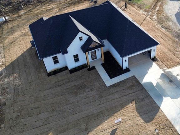 Experience the perfect blend of contemporary design and timeless warmth in this stunning, single level custom home. Built with meticulous attention to detail, this residence offers an open concept layout that is as functional as it is beautiful. The exterior makes a bold statement with a crisp white brick facade contrasted by sleek black trim and modern glass-paneled entry door. The soaring gables and natural wood porch accents provide a warm, organic touch that hints luxury found within. As step through the hallway, you will take notice of an illuminated striking geometric chandelier into the heart of the home. It doesn't stop there. The kitchen is a showstopper. it features custom cabinetry, massive natural wood cased opening frames the kitchen and dining area. Uncompromising Quality. No details have been overlooked. Pella Window, Designer Flooring wide plank European oak style flooring seamlessly through the main living areas. This isn't just a house, it's a masterclass.