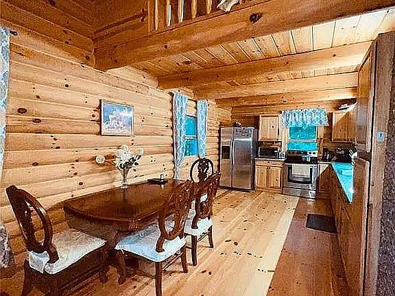 This authentic fully furnished custom real wood Log home measuring 1400 sq.ft. and a 600 sq. ft. real wood log cabin are located near Lake Lanier on 1.78 acres of land at the end of the road, providing lots of privacy. NO HOA! 5 minutes from great middle/ high schools and close to Elijay and Blue Ridge Mountains, 1 hour from Atlanta. POTENTIAL RENTAL INCOME: The log cabin on the property was constructed in 2020, which has never been lived in. There is enough space to build one more guest house (20'x25') on this lot! GREAT INVESTMENT OPPORTUNITY for 1031 EXCHANGE as a rental properties . Approaching the property, a long private driveway winds its way through the lush greenery, leading to the heart of this idyllic sanctuary. The log house itself exudes warmth and character, with its handcrafted logs standing proudly against the backdrop of the surrounding woods. Stepping inside, you're greeted by a cozy interior adorned with exposed wooden beams, hardwood floors, and a stone woodburning fireplace that invites you to curl up with a good book on chilly evenings. Large windows frame views of the verdant landscape, bringing the beauty of nature indoors. The open-concept living area seamlessly flows into the well-appointed kitchen, where modern stainless steel appliances and ample counter space make meal preparation a joy. Adjacent to the kitchen, a charming dining area offers the perfect spot for enjoying home-cooked meals with loved ones. Outside, the property reveals its true splendor. A brand new 600-square-foot log guest house provides additional space for visitors or an investment opportunity, complete with its own kitchenette and bathroom. A private garage and workshop offer ample storage space for outdoor equipment and tools, while a gazebo beckons for evenings spent under the stars, sharing stories and making memories. One of the most enchanting features of the property is its access to a tributary of Lake Lanier, allowing residents to enjoy fishing, boating, and water sports just steps from their doorstep. With ether exploring the scenic shores or simply basking in the tranquility of the water, this natural oasis offers endless opportunities for outdoor recreation and relaxation. With its perfect blend of rustic charm, modern amenities, and natural beauty, this 1400-square-foot log house in North Georgia is a true haven for those seeking a peaceful retreat from the hustle and bustle of city life or Airbnb.