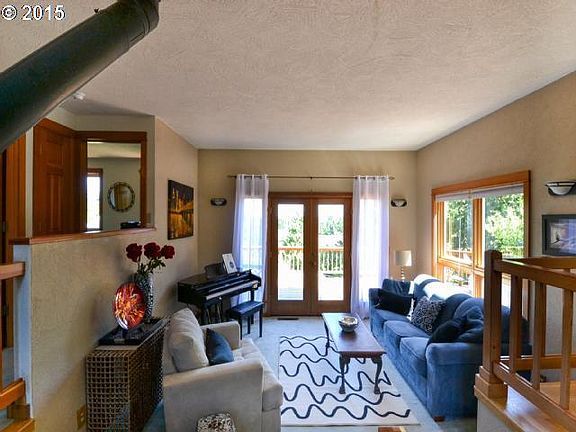 Abundant light for passive solar in custom home built by local craftsman; desirable SW Eugene location with panoramic view! Gorgeous outdoor living spaces - Trex balcony & large deck over stone patio bordered by 40' running stream water feature; fruit trees, beautiful landscaping with fenced garden. 4th bdrm has bath, kitchen, separate entrance for extended living or office. Short walk to vibrant new shops around Friendly Street Market!