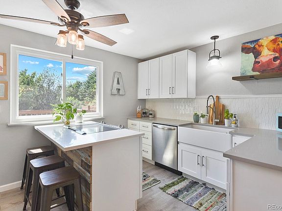 Over $50k in upgrades. All the hard work and expensive items have been done. Home is ready for its next owners. Lots of love has gone into this home. The exterior was just recently painted, the kitchen has new stainless steel appliances, farmhouse sink, quartz counter tops, custom back splash, open wood shelving and new vinyl plank flooring throughout the entire upstairs. New triple pane windows with a lifetime warranty by Precision were installed in 2019. Main bathroom has new subway tile, new tub, and vanity. Custom iron stair rails add a modern touch. New carpet on the stairs and in the garden basement with five inch baseboards give a cozy feel. The backyard has a large new redwood deck, perfect for early morning coffee or backyard barbecues and sunsets. Large backyard with mature landscaping and privacy, garden area, fire pit, and newer fence and gates for great curb appeal. Security system with front and back cameras add a layer of comfort. New whole house fan and wall AC installed to keep the house cool on those hot summer days. Elementary school is within a short distance, easy access to 225, restaurants, Cherry Creek reservoir, DIA and DTC. Come check out this beautiful home.