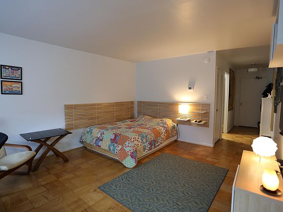 Sunny studio on the upper floor of a very well maintained building next to Van Ness metro station. All utilities (electricity, gas, water, heat) are included in the rent price. Tenant pays only for internet/cable. Very convenient assigned parking spot next to the back door of the building is available for the tenant's exclusive use. The unit has a large walk-in closet and eat-in kitchen. The unit is currently furnished with a new full size bed, wall-mounted tv, kitchen table and chairs, some storage cabinets, lamps, mirrors, window coverings, office table and chair, kitchen appliances including gas stove, full size dishwasher, full size refrigerator, microwave, coffee maker, dishes, pots and pans. The tenant can chose to use all of the furnishings or bring their own and we will remove whatever is not needed. The building has great amenities too: two full size pools on bothsunny and shady sides of the building, a gym, library and party rooms, laundry rooms on every floor, underground walkway to the Giant grocery store and Van Ness metro. The lease is 1 year per condo association requirements, but we allow lease termination at any time after 2 months, without penalty (with 30 days notice). All utilities (water, electricity, heat, gas) are included. Tenant pays for internet/cable. Lease terms are 12 months, but we allow tenants to move out without penalty after 2 months with a 30 days notice. Sorry, no pets or smoking in the unit. Assigned parking spot is available next to the building's back door.