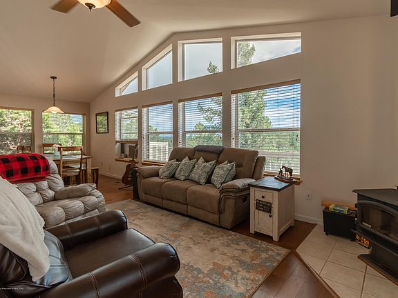 Here is the mountain chalet everyone is looking for! Set among the tall pines on just over an acre, in pristine condition and offered fully furnished with just a few minor exclusions. Easy access off paved Alpine Village Rd to a circular drive with added parking space. Plenty of natural light on wood accents, open concept living/dining/kitchen offering 180-degree valley views. 3 Bedrooms, 2 Full Baths all on one level with a rear covered deck with Trex decking plus a delightful screened in porch. The lower level has 160 square feet of multi-use space that has been used as a studio with a connecting workshop. Plenty of storage space under the home plus a storage building. Pride of ownership shows in this well constructed home built by John Cornelius.