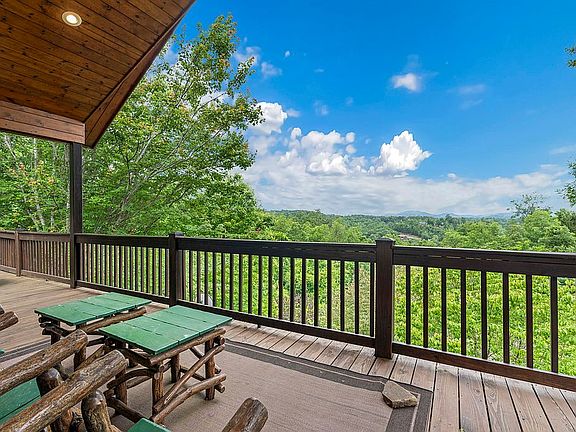 This fully furnished home little over an acre has an amazing view of the Blue Ridge Mountains! Perfect for entertaining or relaxing.  Cozy cabin feel with a wood burning fireplace with stunning vaulted wood ceilings, wood floors and wrap-around porches that you will want to spend your time enjoying the mountain view.   Spacious floor plan (3000 heated sq. ft)  offers  2 living spaces that would be perfect for guests.  The downstairs has 2 bedrooms,  full sized bathroom,  living room, dining area and glass sliding doors that open to the porch.  New detached 2 car garage for all of your storage needs along with a new asphalt driveway. Highly coveted Highland Creek subdivision has lots of wildlife.  There is a common area pavilion and access to the Hiwassee River within the neighborhood. Convenient to the quaint town of Murphy, shopping and restaurants.