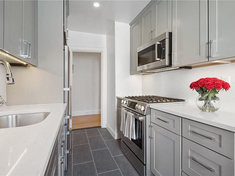 Be the first to see this renovated 2 bedroom 1 bathroom coop on the third floor of this Tudor Style Cooperative. New eat in kitchen with Quartz countertops and Bosch stainless steel appliances. New Bathroom with Kohler fixtures, Toto toilet, marble floor and white glass countertop.