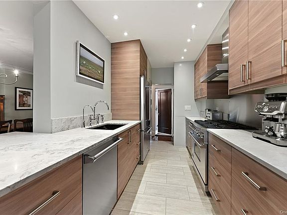 This incredibly cool and sophisticated two-bedroom two-bath Bronxville P.O. pet-friendly apartment is simply perfect for today's lifestyle. The kitchen is exquisitely renovated with full pantry, custom cabinetry, quartzite counter tops, soap stone sink, Italian porcelain floor, six-burner Viking stove, Viking dishwasher and Kitchen Aid double door refrigerator. The breakfast bar is great for casual dining and the built-in desk and cabinetry finishes the kitchen space. This unit offers a formal dining room that opens into the spacious living room providing a comfortable floor plan for everyday living and entertainment. This corner unit boasts two recently renovated bathrooms, ample closet space and hardwood floors. The location is super convenient with convenience shopping, Bronxville Metro North Train Station, Village Shops, restaurants, library, movie theater, walking/jogging path and Farmers Market (In Season) all in easy walking distance. AO 10/7.