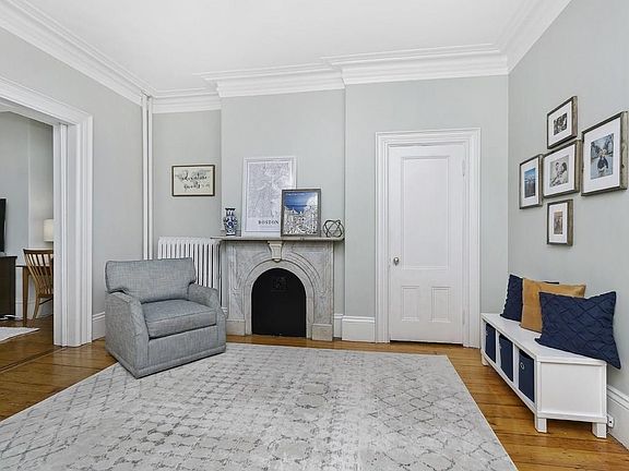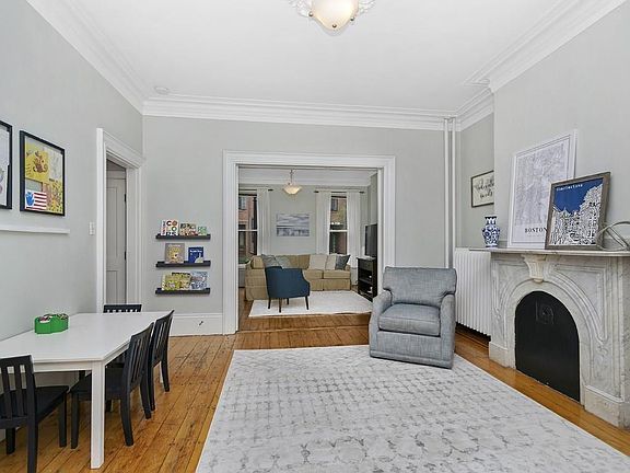 It's all about the view! Stunning 2-level, indoor/outdoor private paradise. 1475+sf show-stopper in classic brownstone w/expansive city views, 2 exclusive-use decks + 800sf exclusive-use fenced-in yard.1st floor features dramatic 15' x 15' living room w/10' ceilings, original crown molding + ceiling medallion & wide-pine floors. Pocket doors open to 17"x15' dining room w/marble fireplace mantel. Off this space find updated bath w/glass tiled shower/marble accents. Bright eat-in kitchen features ample cabinet space, marble backsplash, ss appliances, butcher block counters & view of the Prudential. Private deck off the kitchen is the perfect place for a summer breeze, al fresco dining & entertaining . One flight down find exclusive-use patio & yard.Ground level w/2 bedrooms, full bath w/tiled tub & laundry.Other features: new flooring, radiant heated floors, exposed brick, barn doors & custom millwork, storage & closets+ recessed lighting. Enjoy the city from your own backyard!