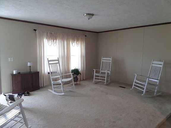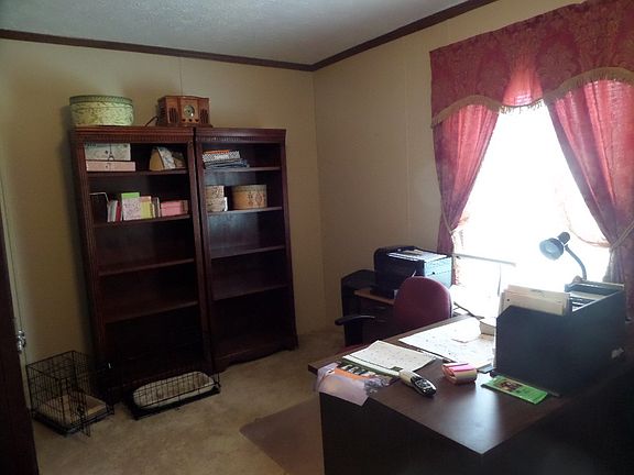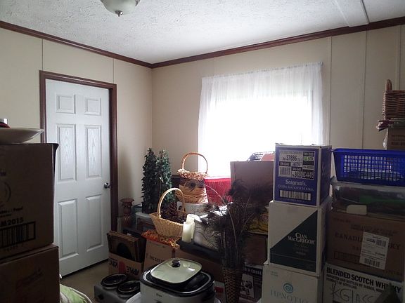 This is a beautiful as good as new open floor plan double wide on permanent foundation in a lovely hidden neighborhood. This home has a large wrap around deck, second deck overlooking small pond, 2 storage buildings, small covered bridge over creek to second lot. Enclosed sunroom with pop out windows so it can be enjoyed year round!! Also, has a large family room off of kitchen with stone wood burning fireplace.