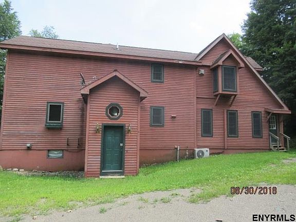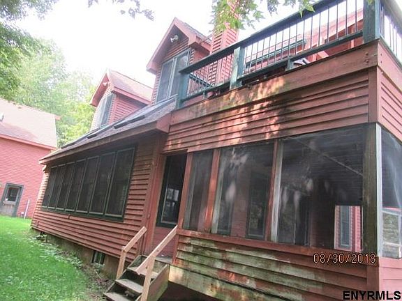 Great opportunity to own a Contemporary in rural; Washington County on 4.22 acres with magnificent views of Adirondacks & Green Mountains. Detached garage with apartment,open floor plan,detached ranch style building used for storage with electric. Very secluded estate setting, Top of a mountain, Full walk out basement. Discoloration is present.