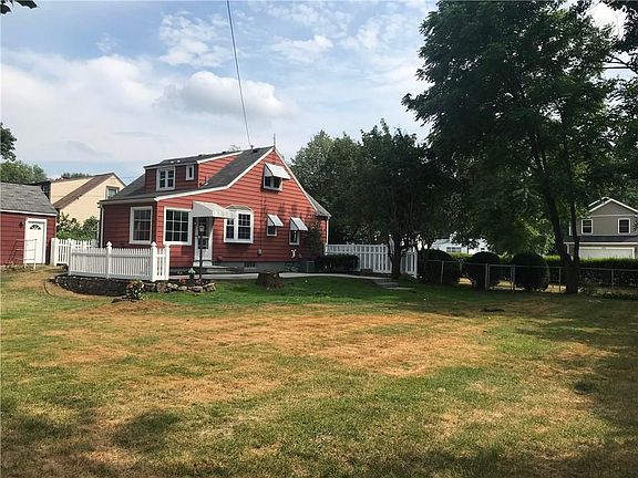 Beautifully remodeled home with a double lot, complete with a fenced-in yard. Quiet street located in the Town of Gates. Updates include new kitchen, bath, flooring, carpet and tons of natural light. The kitchen includes brand new stainless steel appliances. Master bedroom down, upstairs has two bedrooms. Plenty of closet space in all three bedrooms. Newer windows, furnace, central air, and a brand new outdoor patio which overlooks new landscaping. Roof in great shape, the basement is large and partially finished and great for recreation space. This house is move-in ready!!