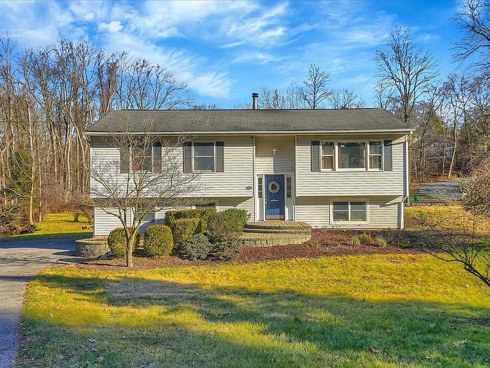 With the babbling sounds and serene view of Fishkill Creek only steps away from your back door, this pretty 3 BR, 2 bath Raised Ranch will provide you a private oasis to call your own. Thoughtfully renovated in 2020 to reflect today's preferences for natural wood and open concepts, you'll love the easy care of hardwood floors, stainless steel appliances, and granite & butcher block counter tops. What's not to love about the master bedroom ensuite (with a romantic electric fireplace) and the expansive side/back yard? The lower level (which leads to the oversized 2-car garage) has the potential of a great family room when finished with your personal specifications. Finally, don't miss the natural curb appeal of the home with its stonework and pavers & perennial landscaping leading to the front entrance. This is a great commuter location, near West Mountain State Wilderness Park, the Appalachian Trail, and other natural attractions.