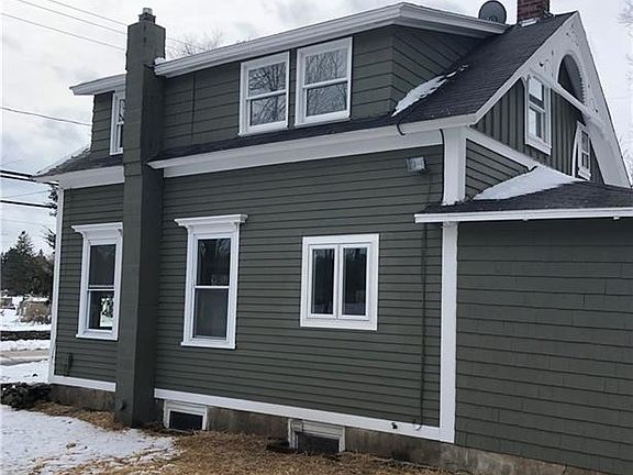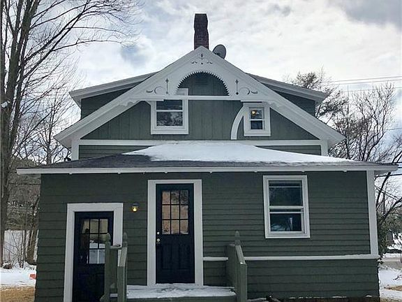 Looking for cottage charm, schedule a showing today! This 1178 sq foot, 3 Bed, 1.5 Bath home has hardwood floors throughout. Living room with bricked chimney and wood stove. Kitchen is bright and modern with granite counter tops and white cabinetry with an eat in area. First floor room can be used as an office space or bedroom. Half bath on first floor. Second floor has 3 bedrooms all with newer carpet. Full bath on second floor. Laundry room in basement. Windows are two years old and partial roof done in 2020. Ornate exterior details. Flat open yard. Shed for outdoor storage. Minutes from 395! Move in ready!