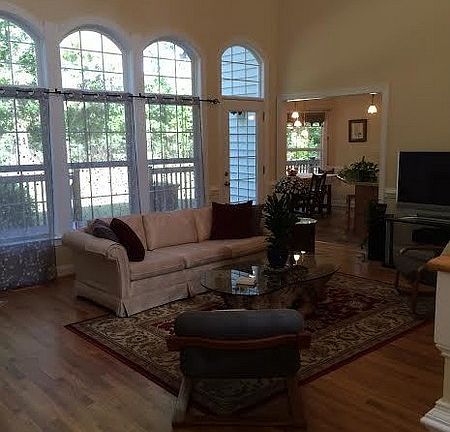 Stop sitting on I 40! This location is sooo much better! With soaring cathedral ceilings and tall, beautiful windows, this home feels even bigger than it is. The downstairs master suite has his and hers closets and his and hers sinks so that you can have your own space. :) Master bedroom also offers your own access to the huge deck and screened in porch where you can enjoy the trees behind the beautiful, private, fenced back yard (without having to look at your neighbors house!). Also downstairs is an office/guest bedroom with an adjoining bathroom (w/shower) perfect for visiting parents who have a difficult time going upstairs. The second floor boasts two large bedrooms with walk-in closets as well as a large bonus room with a closet and side storage. The upstairs bath has two separate sink areas to avoid morning conflict and a lot of storage! There is also a separate walk-in unfinished storage area. Downstairs, the site-finished hard wood floors were refinished last year and most of the house was repainted within the last year as well. :) Over-sized garage, double trey ceilings, 2" blinds, ceiling fans, dimmer switches... so many little details make this a wonderful home! ... Best of all the HOA fees are super low - only $65/year!