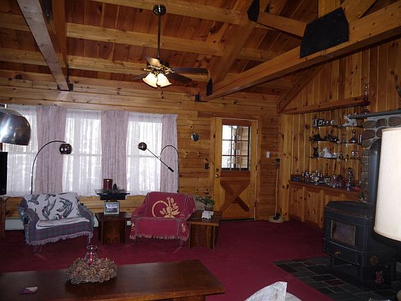 Very well maintained log home on 5 acres of wooded land. This house is in a great location with complete privacy. With over 2500 square feet of living space there is plenty of room. Large master suite on the main floor with additional rooms on both the basement level & 2nd floor. The living room has a beautiful cathedral ceiling with wood beams & leads to a 4 season sunroom with its own separate entrance. The basement level has endless uses from bedrooms & a full bath to multiple storage rooms & seating area. The second level is currently one large room that could be made into 2 separate rooms. There is an oversized heated 2 stall garage with attached workshop. Great price! Must See!!!