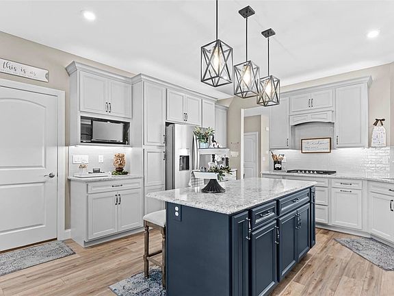 Prepare to be WOWED! Exquisite, 3 BD, 2 BA ranch on a level, tree lined homesite on a cul de sac street in desirable Lake St. Louis. The ext is stunning with a brick façade, stone accents, prof landscape, lawn irrig, shake detail in the gable, carriage style gar doors, an O/S 3 car garage (21âEUR(tm)7âEURD), arch shingles and a ridge vent system. Features inc luxury vinyl plank flrs throughout, 9 ft clngs, Grt Rm window wall with atrium staircase, wrought iron stair spindles, huge Grt Rm, 42âEUR cabinets with crown, gas c-top, wall oven, SS appl, island with seating bar, Quartz c-tops, roll out shelving, subway tile, coffee bar, pendant lights, Hearth Rm, gas FP, DR, main flr Laundry Rm with sink, spacious bdrms, W/I closets in every bdr, Lux Mstr Bath with raised height split vanities, W/I shower, frameless shower door, smart home wiring with security and humidifier. There is a 15x18 covered patio with a vltd ceiling and cust shades. Impeccably maintained, beautiful decor, amazing location!