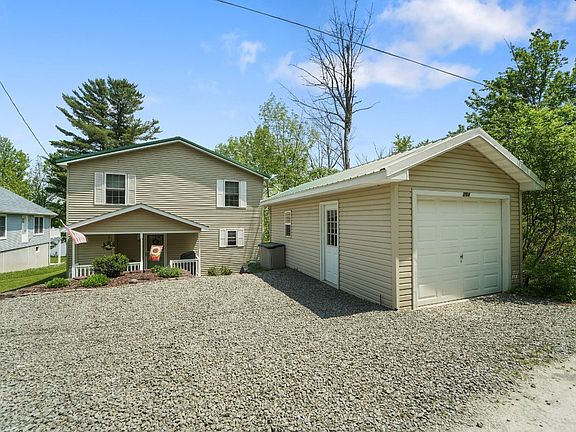 The spacious primary bedroom features stunning lake views. Enjoy the outdoors from three covered porches, ideal for sipping your morning coffee or watching the sunset over the water. Additional highlights include a detached 1-car garage and ample storage.