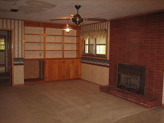 Beautiful setting. Large rooms, fireplace with gas logs in den(can be reverted back to woodburning), 2 outside stoage buildings, cedar closets, storm doors.