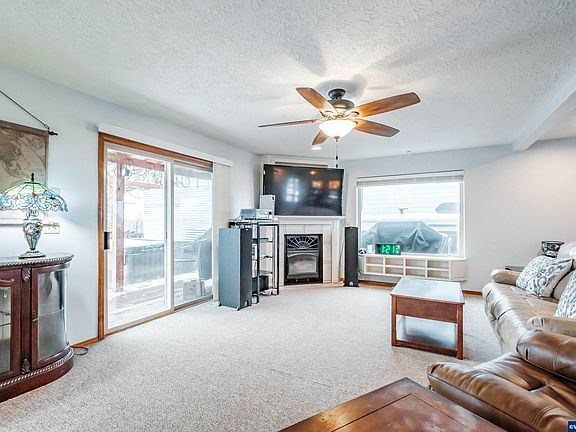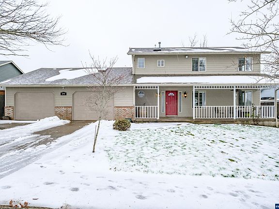 Experience custom living with stunning views and oversized front porch! The updated kitchen has a built-in pantry, eating bar, and a garden-view window. The great room is the centerpiece with gas fireplace, built-ins, and bookcases. The Primary offers vaulted ceilings, plant shelf, sunrise-view windows, WIC, and a skylight-lit bathroom. Backyard with country atmosphere, new covered deck, UGS, patio for summer BBQs, 4-car garage with doors in the front and back, equipped with air-filtration.