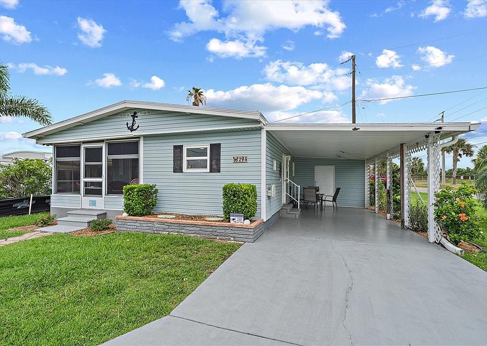 IMMACULATE CORNER LOT GEM in TROPIC ISLES – Move-In Ready & PACKED WITH UPGRADES! Welcome to your dream Florida retreat! This meticulously maintained corner-lot DOUBLEWIDE home is the perfect blend of style, comfort, and coastal charm — and it’s COMPLETELY FURNISHED AND MOVE-IN READY. Step inside to discover a SLEEK KITCHEN and BATH completed with a GLASS TILE BACKSPLASH, soft-close cabinetry, and newer appliances. Every detail has been thoughtfully updated —OCTOBER 2024 VAPOR BARRIER AND DUCT WORK; NEW FLOORING; BEDROOM CARPETS, HVAC JAN. 2025; ALL WEATHER MEMBRANE ROOF IN 2021; WINDOWS REPLACED BY WEATHER TITE WINDOWS (PGT 2200 SERIES) IN 2015. PEST & TERMITE SERVICED. JULY 2025 Clean 4Pt HOME INSPECTION available! Home Security System/camera does not convey. This home is the definition of TURNKEY PERFECTION!