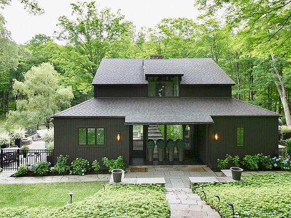 Welcome to the epitome of modern elegance in this pristine contemporary retreat, set on 6 lush, landscaped acres, complete with a charming guest house. Nestled in the heart of an idyllic country retreat, this property represents a unique blend of luxury and tranquility. The 2024 renovation, masterfully executed by the acclaimed European firm Voce Di Design Studio, has elevated both the main house and the guest house to new heights of sophistication. Designed for modern living, the open floor plan creates a seamless flow between spaces. A chef's dream, the gourmet kitchen is equipped with top-of-the-line appliances, coffee/ bar station and elegant finishes. Floor-to-ceiling windows and sliding doors frame spectacular views of the verdant surroundings, enhancing the indoor-outdoor living experience.The outdoor space features three expansive decks, seamlessly connecting different parts of the home for easy access and effortless entertaining. The spacious guest house offers a tranquil retreat with one luxurious bedroom; (fourth bedroom and bathroom). A well-appointed gourmet kitchen and soaring ceilings create an airy, inviting space.Floor-to-ceiling windows and French doors open onto an inviting outdoor deck, perfect for soaking in the tranquil beauty of the landscape.Every detail of this extraordinary estate, from the high-end finishes to the seamless indoor-outdoor flow, speaks to contemporary design at its finest. This true sanctuary harmoniously blends modern luxury with timeless elegance, making it an unparalleled retreat for those seeking the ultimate in sophisticated living.