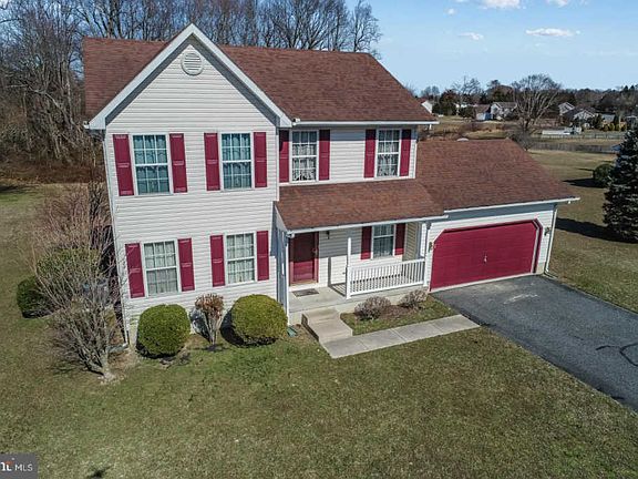 GREAT BEGINNINGS! Charming colonial that has freshly painted shutters, front door and garage door and is ready and waiting for new homeowner. As you enter the traditional center hall with wood flooring that leads to kitchen and dining area that also has wood flooring and has sliders to a large expanded deck. The kitchen offers gas range w/oven, dishwasher and refrigerator. Laundry is located on main level and washer and dryer are included. The formal living room and powder room completes the first level. The second level offers owners suite and two additional bedrooms, one with wood flooring, and two full baths, both with new vanities and flooring. Owners have new railings on front porch, an alarm system and two car garage. The lot backs to tree line for privacy. Don~t wait to see this well cared for home.