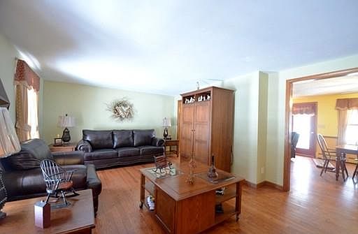 Beautifully maintained 4 bedroom, 4.5 bathroom expanded Cape on 2.5 acres. Nothing to do but move right in! Large eat in kitchen boasts hardwood floors, island with breakfast bar and endless cabinet space. Sitting area offers fireplace and access to 3 season porch, great spot to enjoy a morning cup of coffee! Formal dining room with chair rail and gleaming hardwood floors. Spacious, sun filled living room. Bedroom and 1.5 bathrooms complete the main level. Master suite features hardwood floors, walk in closet and private bath with a Jacuzzi tub! 2 additional spacious bedroom and full bath make up the 2nd level. Lower level offers enormous family room complete with a bar! Outdoor space is ideal for summer entertaining with a large deck, perfect for grilling. Enjoy hot summer days relaxing by the pool. A 2 car attached garage completes the package! Schedule your showing today!