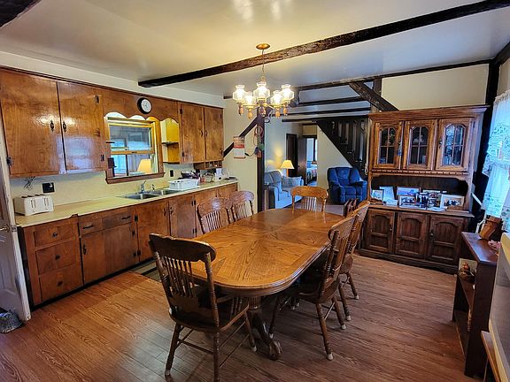 This saltbox style home has been extended throughout the years and is looking for a new owner to come and put their stamp on it. The property is in livable condition with the majority of updates, depending on your taste, being required on the exterior of the home. The home features an eat-in kitchen, living room and sunroom on the first floor. It also offers a first-floor primary bedroom, complete with a dressing area and half bathroom, which could potentially be made into a full master bathroom, there is another bedroom on the first floor, an office space, and a full bathroom with laundry hookup. The second floor offers 2 more double bedrooms and access to an attic space. Storage is not something this property lacks, in addition to the attic space are 2 storage rooms, easily accessed by the mud room. For parking the property has a carport that easily fits 2 vehicles, this is in addition to the ample parking in the driveway. Attached to the carport is another storage shed that would make a great area to keep all the toys. The building on offer sits within a 2.5-acre open parcel of land, offering a lot of space for family gatherings, children, or pets; within the acreage are some apple trees and a barn towards the wood line. Come see this home and take advantage of the potential sweat equity this property could earn you.