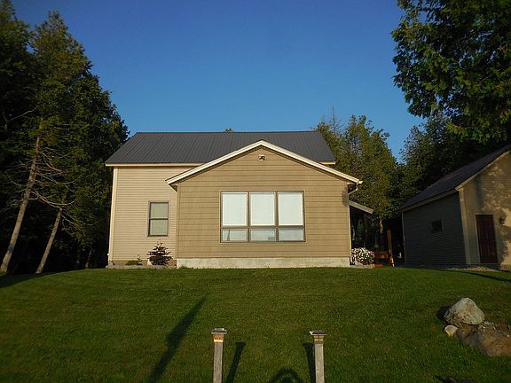 Custom lake house that was built to be low maintenance on quiet Lake Parker. Radiant heat, energy efficient, metal roofs, tile floors, solid cherry cabinets, second bedroom is 24ft x 30ft so it can be easily be divided for additional sleeping spaces , vaulted ceiling in sunroom, manicured landscaping with large back lawn offering extra parking and camping with its own driveway entrance, level lot, drilled artisen well ,vinyl siding, gas wood stove, basement with access to plumbing to add 2nd bathroom upstairs, outside fireplace, aluminum dock, large amount of storage above the garage and in basement.