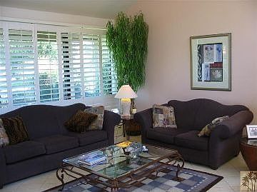 Three bedroom, two bath Monterey Country Club condominium offered turnkey furnished and move in ready. Located behind the green on the first fairway of the South Course, this unit features panoramic fairway and mountain views. The light and bright interior features cathedral ceilings and a tidy atrium for added cross ventilation. This condo includes plantation shutters, updated ceramic tile in traffic areas and a beautifully landscaped entry courtyard for added privacy. The unit is located on a quiet interior street and is just a short walk to two community pools and a fairway away from the clubhouse. Monterey Country Club features 27 holes of championship golf, 19 tennis courts, fitness center, pro shops and full service clubhouse--all available to homeowners with no initiation fee! This unit is move in ready....just bring your golf clubs and toothbrushes!