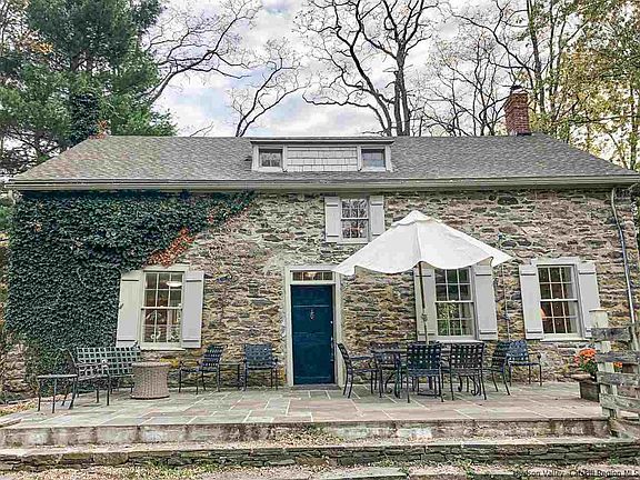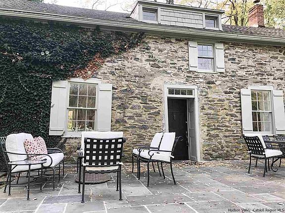 A rare and unique opportunity to own a piece of history in the Hudson Valley, this recently remodeled home was built in 1790 and is listed on the National Register of Historic Places. Built from stone and called a bank house, since it was built into a rise in the earth and leaves a part of the basement exposed, this landmark home is known formally as the C.K. Schoonmaker House. Located on 4.2 idyllic wooded acres, the stately home sits back from the road and has a classic gabled roof that's flanked by two chimneys. The elegant front facade includes a main entrance with sidelights and transoms, opening onto a central hallway. The original wide plank flooring and exposed wood beam ceilings can be seen throughout the home, while the original notice wood paneling in the stairway dates back to the construction of the home. Enter on the first floor to an open living area that includes a full bathroom with a claw-foot tub. The second floor houses a modern kitchen, a dining room with a wood burning fireplace, and a living room with a wood burning stove. The third floor has four bedrooms and a full bathroom with a step-in tiled shower. The lot also includes a barn that can be used for horses or vehicles, an in-ground gunite swimming pool, and a stone terrace. The family-friendly Kelder Farms is close by for picking your own fruits and vegetables, and the home is perfectly located between the popular towns of Stone Ridge, High Falls, Kingston, and New Paltz. The local community is friendly and charming and offers excellent artisan shops, colorful farmers markets, delicious local breweries, and dozens of orchards and farms. Genuine and unspoiled, the C.K Schoonmaker home is one of the oldest homes in the Hudson Valley. Yet it's been lovingly restored with updated electrical, plumbing, and heating systems. The kitchen and all appliances have been updated as well--and the home has a new roof, too. A full detailed list of all recent improvements is available upon request.