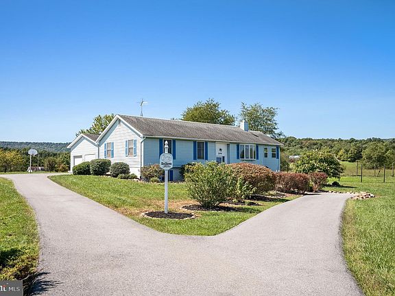 $25k PRICE REDUCTION! Bring the horses or goats! This 8-acre property includes a fenced paddock, barn area, and a small cottage in addition to a well cared for 3 bedroom 2.5 bath home with a solarium addition and oversized 2-car garage! Take in a deep breath and come home to mountain views. This home is located on a quiet country lane with large lot properties all around. Inside, this three-bedroom, two-and-a-half-bath home has a very large eat-in kitchen with large pantry and mudroom, oversized 2-car garage with work bench and storage area. Wrapping around two sides of the house is a solarium that brings in the light and has great views. The living room with a bay window leads back toward the primary bedroom with attached full bath and two additional rooms that share a hall bath. Downstairs is a fully finished basement with laundry area, half bath, wood burning stove and all the square footage you can imagine! Outside, three sheds, a barnyard area, and an old cottage await your creativity! ***This house is located in the countryside within an easy drive to Winchester, VA. Vacant and ready to show- a Must see!