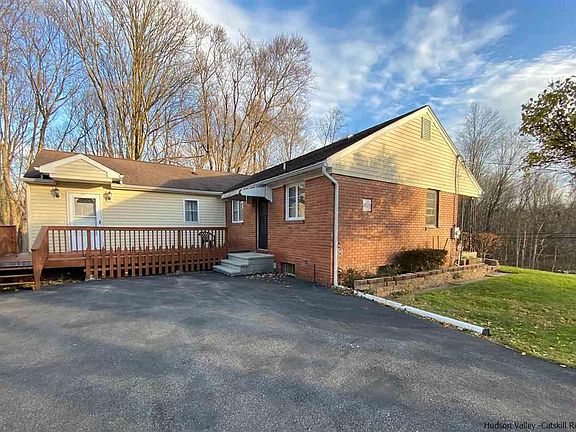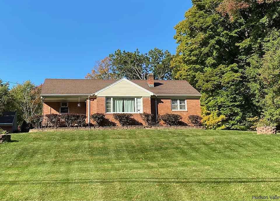Welcome Home. Easy living on one of the most special roads in the town of Esopus. The drive home to your brick 3 bedroom/3bath ranch house includes beautiful vistas of the Hudson River which includes the Esopus Meadows Preserve and Lighthouse Park. Privately sited on a slight knoll with a brick 2 car detached garage nearby this is a unique site to call home. Slightly behind the house looking out onto a meadow is a above/ inground pool. Enter the house through the eat-in kitchen which opens to a light filled living room complete with a fireplace and large picture window looking out to the meadow out front. There are 2 bedrooms and full bath and a 3rd spacious suite that leads to the outdoors. An additional 600 sq ft in the lower level lends itself to end less opportunities for a family room, home office, artist/musician studio and anything else your heart could imagine. You are a short drive to Kingston, New Paltz and the charming town of Port Ewen. This is a great property for you to create your future while enjoying the beauty and quiet with family and friends.