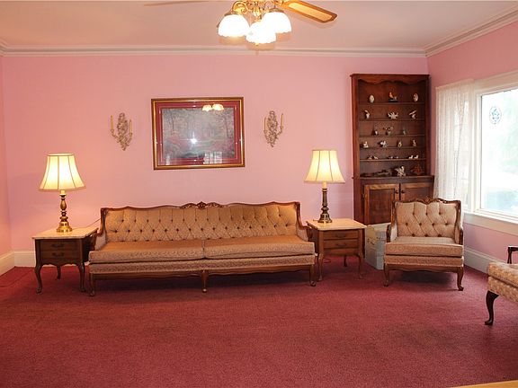 Character & charm, home built 1890 & owned by Kirchhoff families for over one hundred years. High ceilings, wood floors, some porcelain door knobs, roof (approx 10 years), spacious kitchen with electric range, dishwasher, microwave & refrigerator, 1st floor laundry, open front porch, enclosed back porch, entertainment size dining room & living room, could be bedroom/den/office on ist floor, bathroom on first floor. large bedroom w/double closet, tandem bedrooms, pull down stairs for attic access. ample storage areas. BARN is NOT on this property! One year HSA Home Warranty plan included.