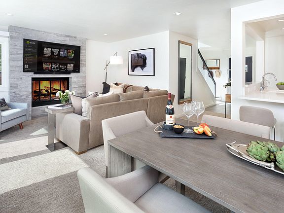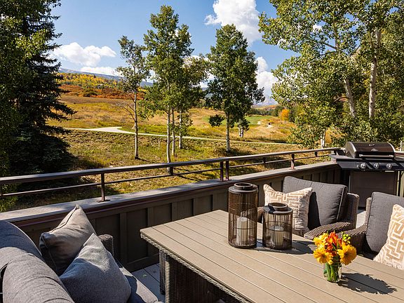 This contemporary Villa checks all the boxes for golf and ski enthusiasts with a prime location on the golf course with views of the slopes. The main level features a sparkling white chef's kitchen with a walk-in pantry and Bosch appliances, a comfortable living room with a wood-burning fireplace, and an adjacent dining area. A large deck off the living area has plenty of space for dining and entertaining. Upstairs, you'll find three gracious bedrooms plus a spacious loft, which doubles as a 4th bedroom and office. The master suite has a fully remodeled bathroom, a spacious, private deck and a walk-in closet. New carpet, beautiful furnishings and a designated carport round out the package. The amenities of the Snowmass Club are just across the street.