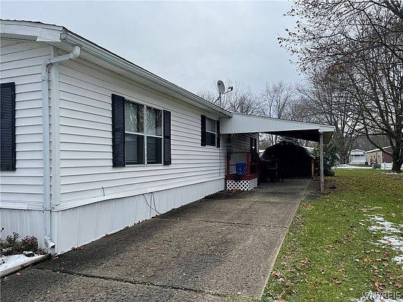 Well-kept doublewide home on a dead-end street in the park within walking distance to the mailboxes. Enjoy this move in ready 2-bedroom 2 bath home and take advantage of the reasonable cost of Arcade Electric! Newer carpeting thru out home, new furnace will give you a piece of mind. Carport has space for 2 cars and a home offers a covered deck on the other side of the house for you to enjoy and added storage with the shed in the backyard! This home would make a perfect starter home or a nice place to enjoy retirement!